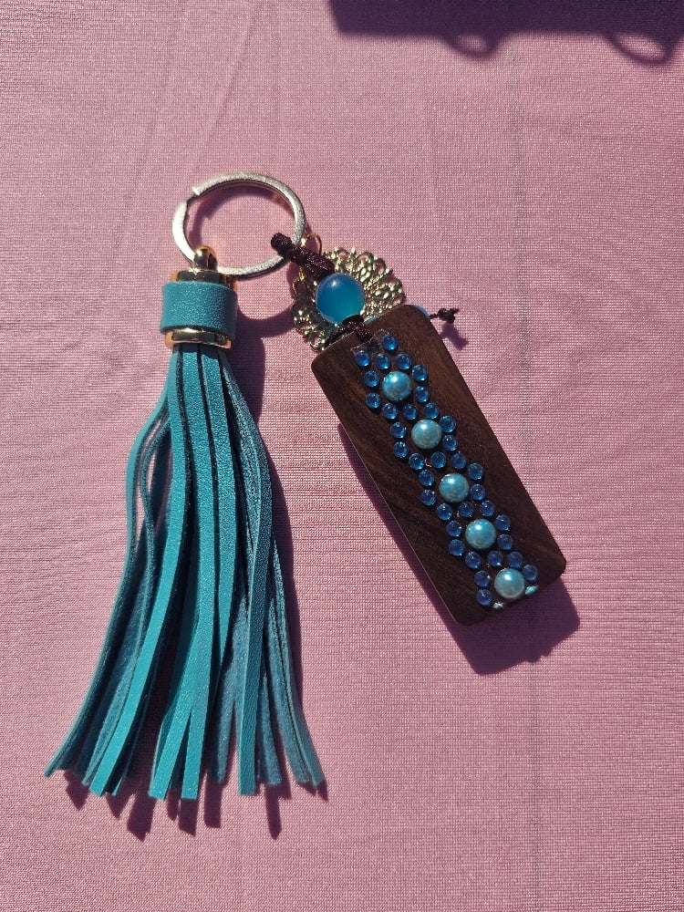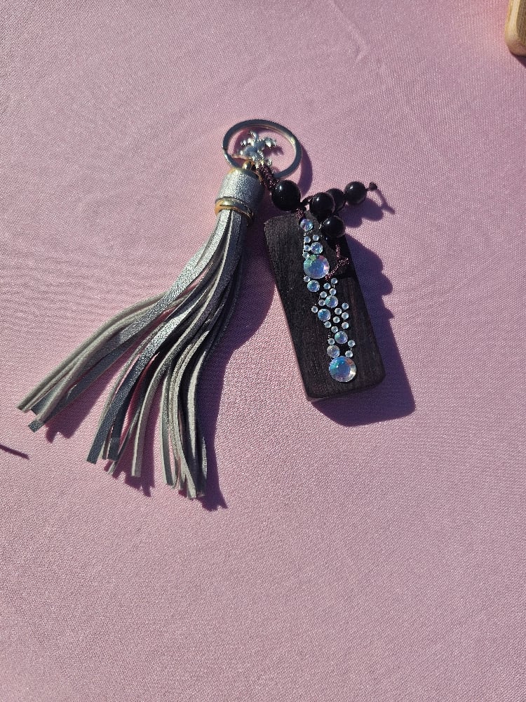 Upgrade your keys, bag, or wristlet with a little sparkle and a whole lot of attitude. These handmade tassel keychains feature rich wooden beads, dazzling rhinestones, and vibrant faux-leather tassels that swing with every step.